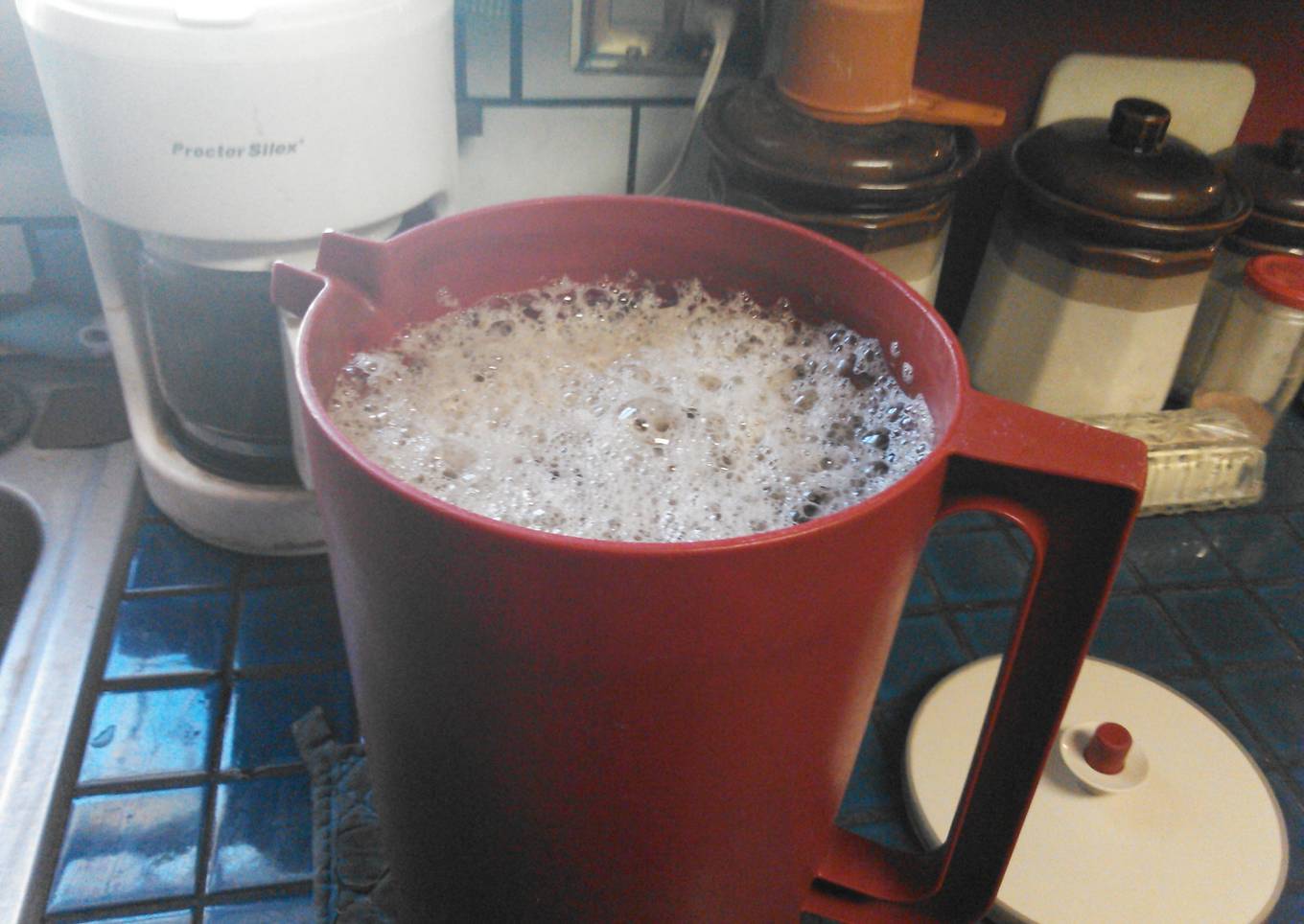 - When coffee maker is finished, pour into container and stir until sugar is desolved.