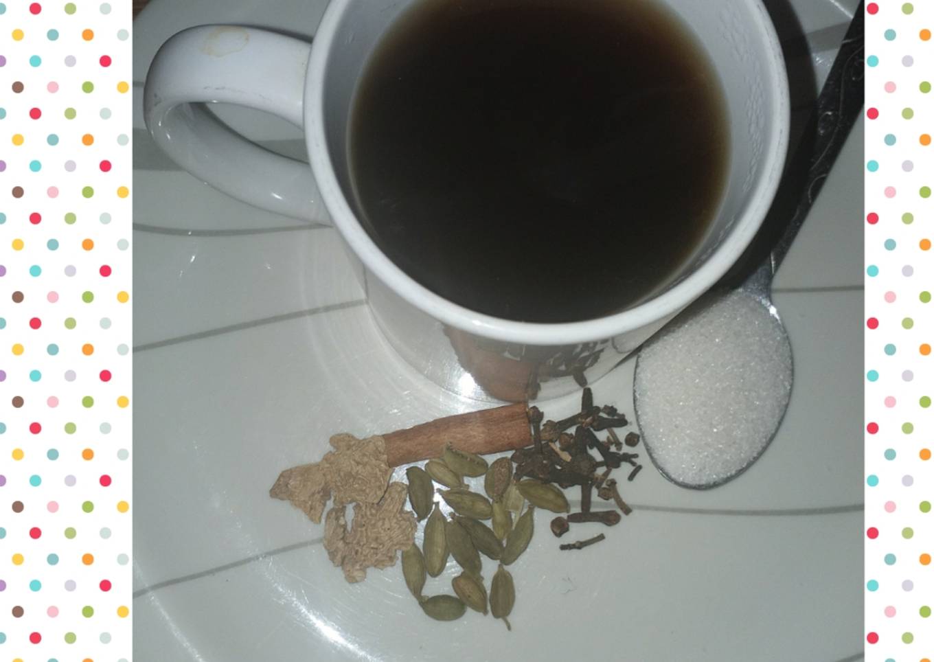 - Add watar in a pot and all the listed ingredient allow it to boil add sugar and serve hot..