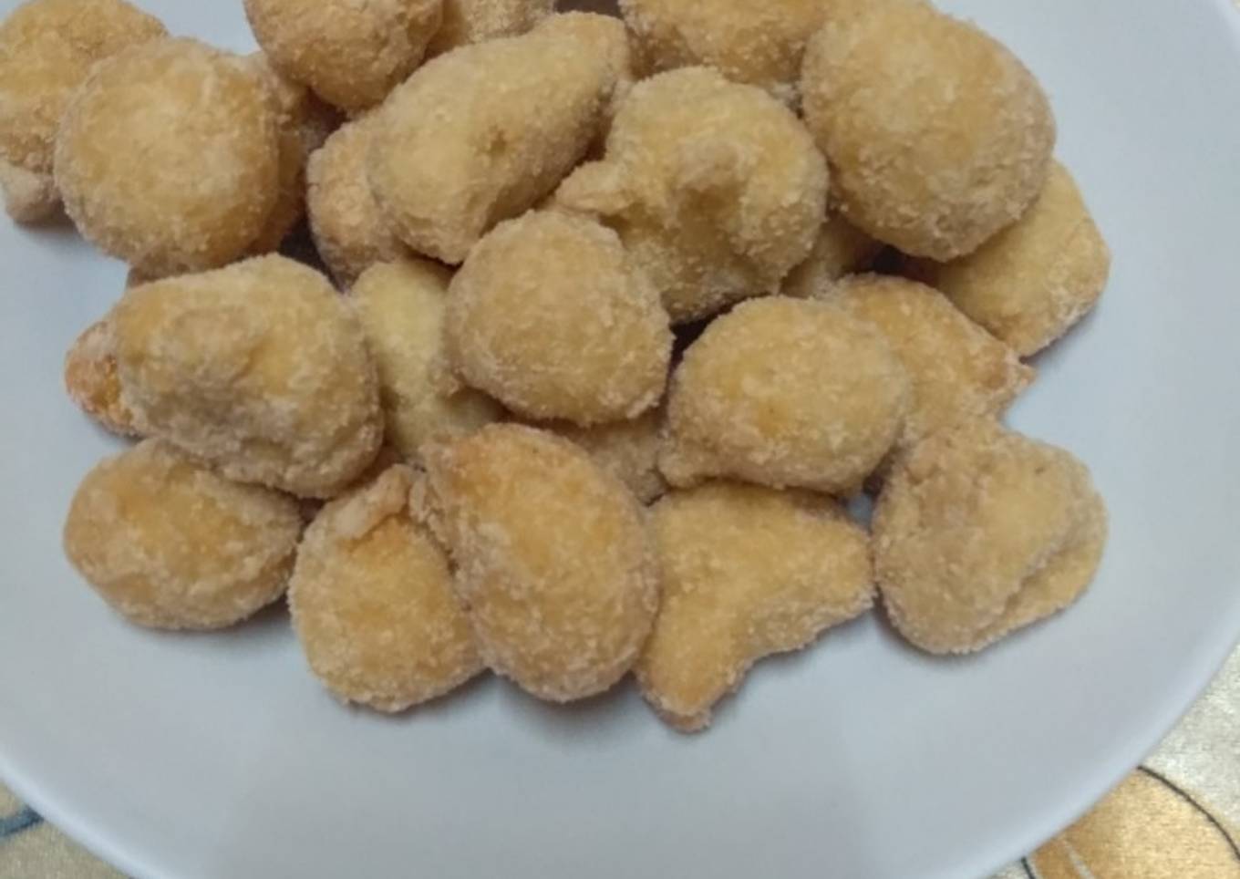 - Put fried dumplings in a large bowl.pour the syrup over them and quickly start mixing.. As sugar dries,it sticks to the dumplings.ready to serve